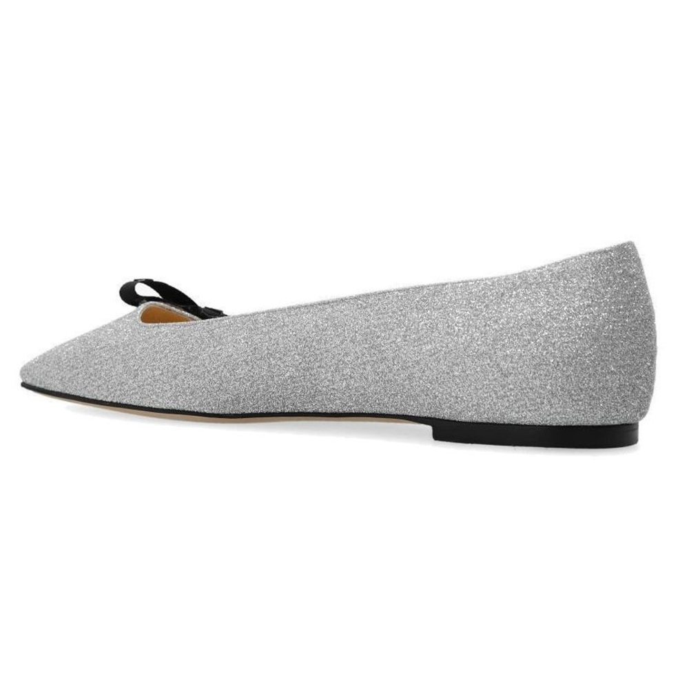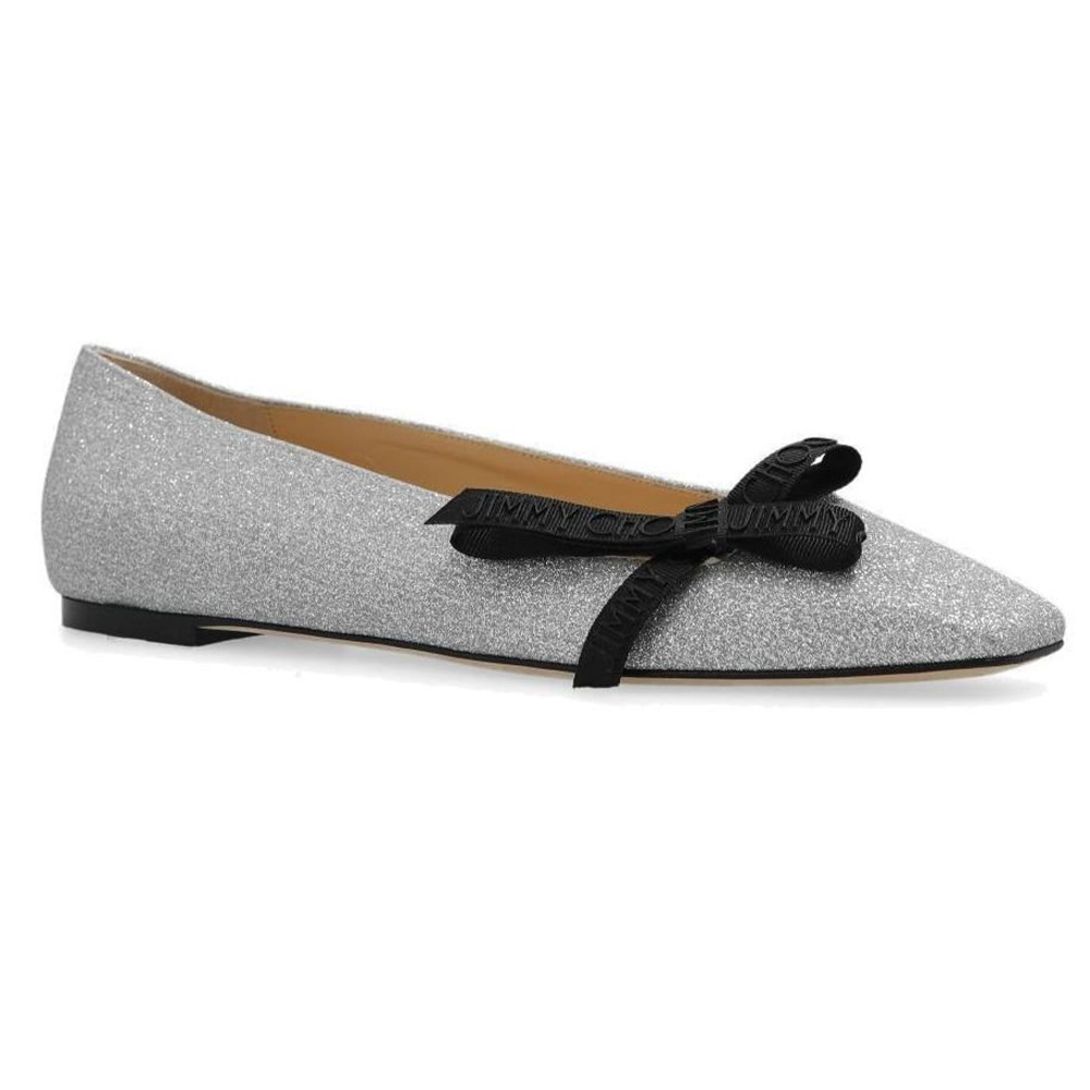 지미 추 보우가 있는 발레 실버 블랙 레더 플랫 발레리나 펌프스