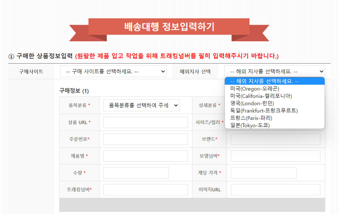 ☞ 일본배송대행지는 해외지사 선택시 "도교"로 되어 있지만, 현재 오사카 지사만 운영되고 있습니다.
